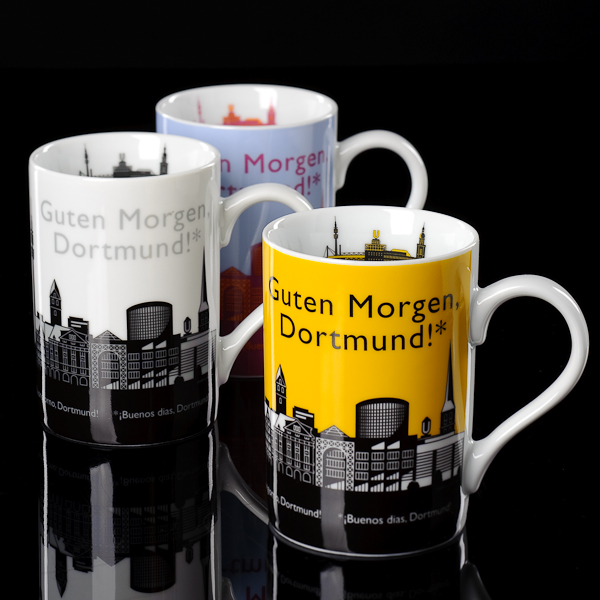 Kaffeebecher aus Porzellan mit Ihrer Stadtsilhouette.
