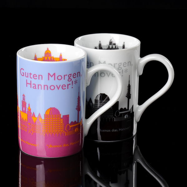 Kaffeebecher aus Porzellan mit Ihrer Stadtsilhouette.