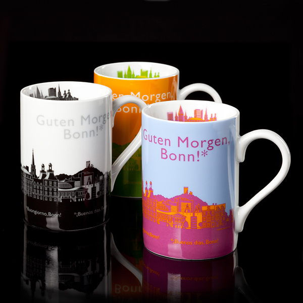 Kaffeebecher aus Porzellan mit Ihrer Stadtsilhouette.
